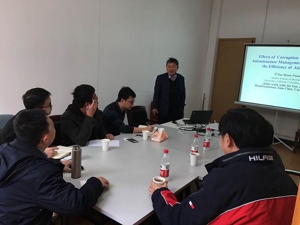 2月24日,加拿大不列颠哥伦比亚大学商学院讲座教授,国际航空交通研究会主席Tae Hoon OUM教授在文澜楼108会议室,与365英国上市网站官网的老师和同学们进行学术性报告与交流。本次学术交流由龚强主持,学院部分老师及同学参加了讲座。