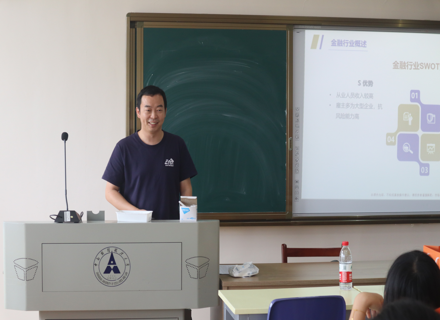 东方财富证券武汉中山大道证券营业部总经理何川女士,以“深入金融行业,完善职业规划”为主题,从职业生涯规划的内涵、流程等方面,与同学们分享了职业规划的方法和经验,并鼓励同学们积极参加由企业方主办的活动与竞赛,充分发掘自身潜能。