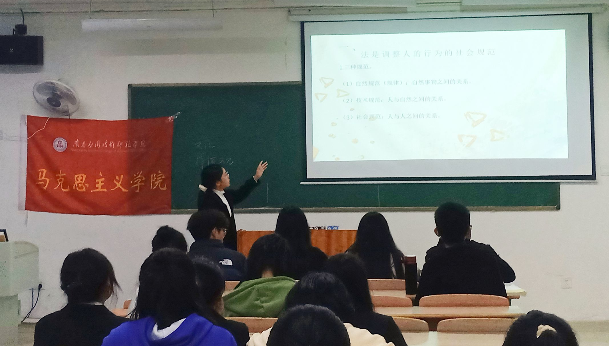 为结合“12.4”全国法制宣传日的活动精神,营造我校良好的法制教育环境和氛围,增强学校推进法制教育的时效性,提高同学们法制观念,树立良好的法律意识。于2022年12月2日,我校组织法学专业的学生到每个班级进行法律知识宣讲。