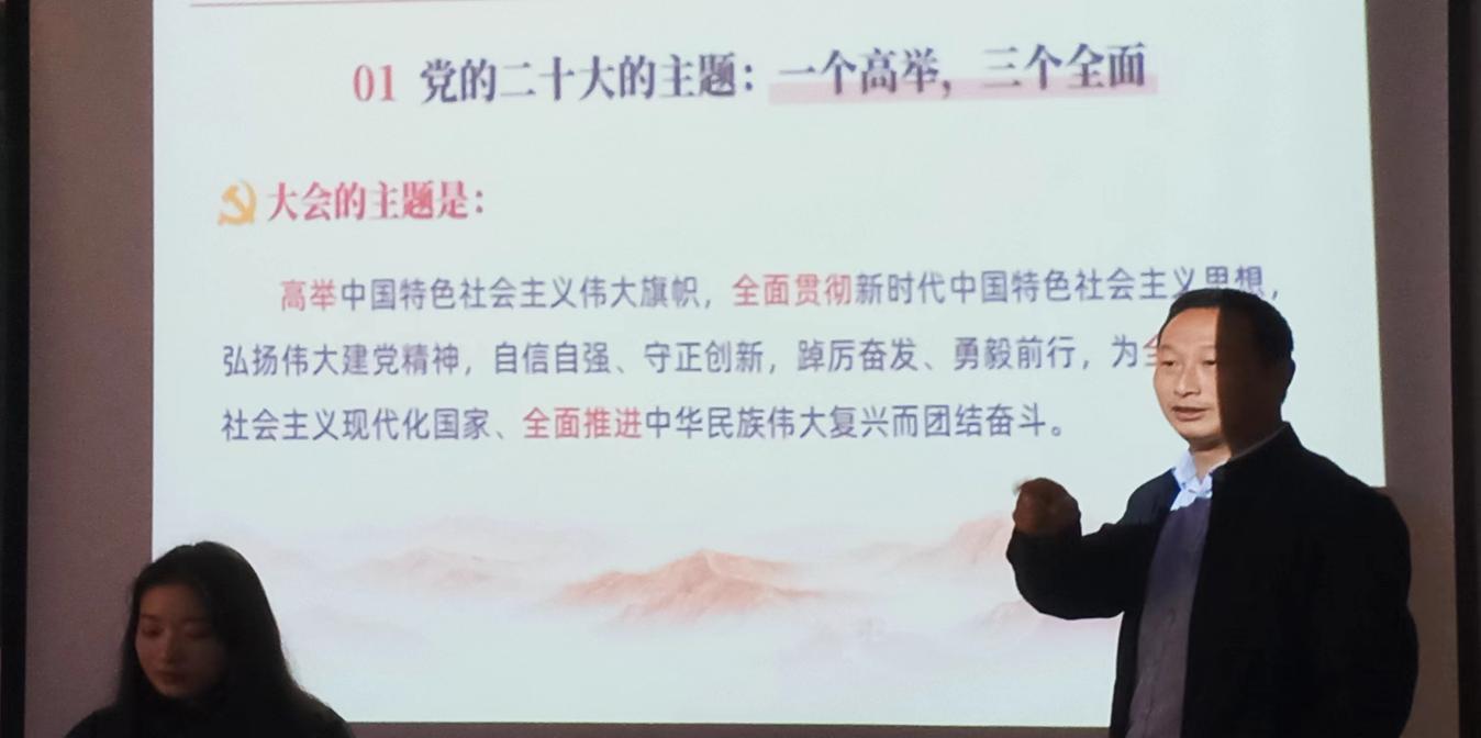 此外,党总支副书记桂光泽以党的二十大精神为重点,将党的精神运用在实践中,强调突出服务同学的宗旨和纪律作风。会议指出,党的二十大主题意义,即“一个高举,三个全面”,对全面建成社会主义现代化强国两步走战略安排进行宏观展望的细节解述,以及对科学谋划未来5年乃至更长时期党和国家事业发展的目标任务和大政方针的内容汇总。
