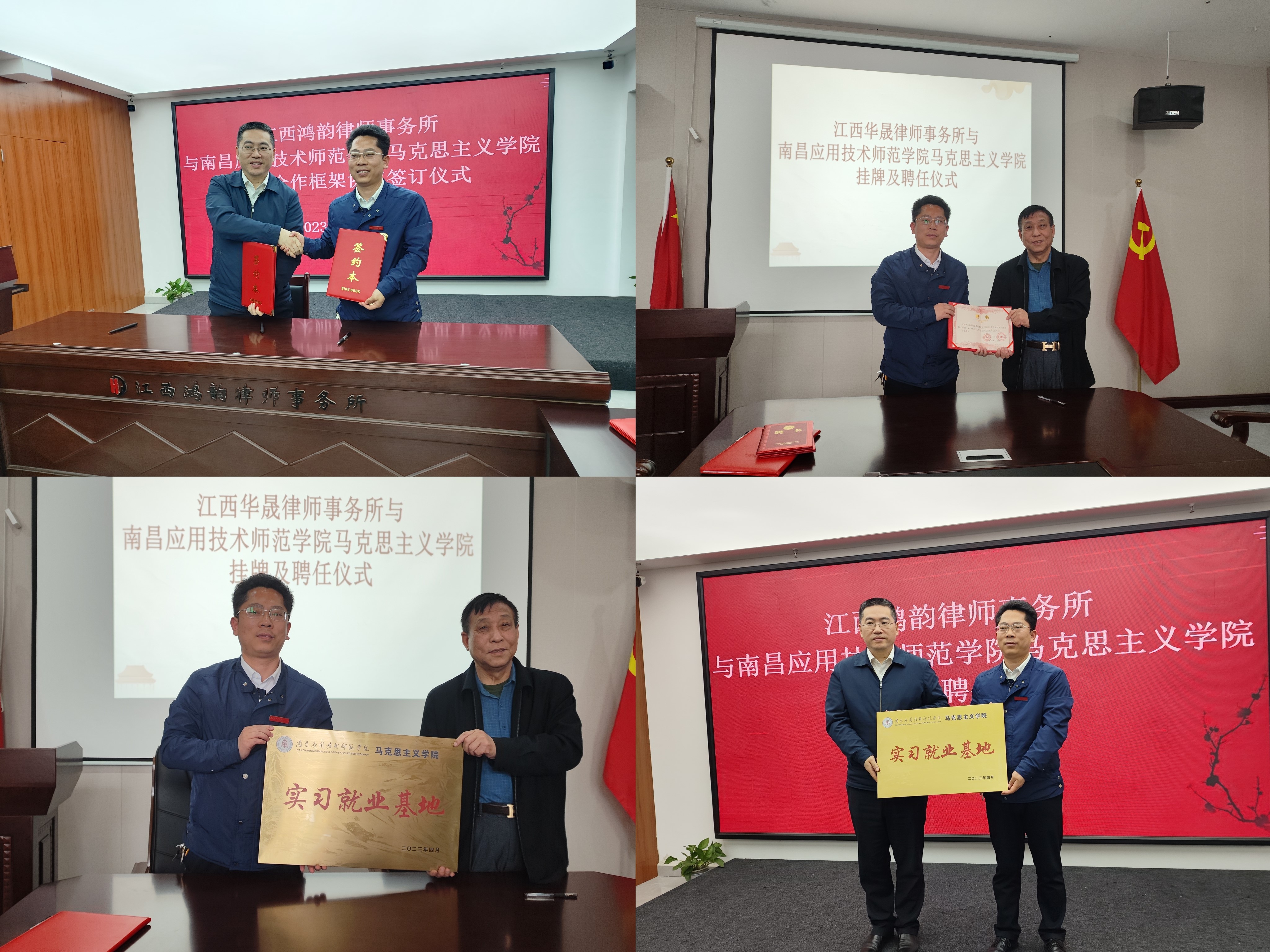 本次访企拓岗,还分别与鸿韵律师事务所和华晟律师事务所签定了合作协议,新建了实习就业基地并挂牌,聘请了鸿韵律师事务所陈平宜、施远涛、袁小红,华晟律师事务所易惠新、郭春雷、郑力杰六名资深律师担任校外导师。校企双方就下一步派遣实习生、提供岗位、律师来校参与毕业论文指导、提供真实法律案例用于课程建设等方面达成了共识,制定了规程。