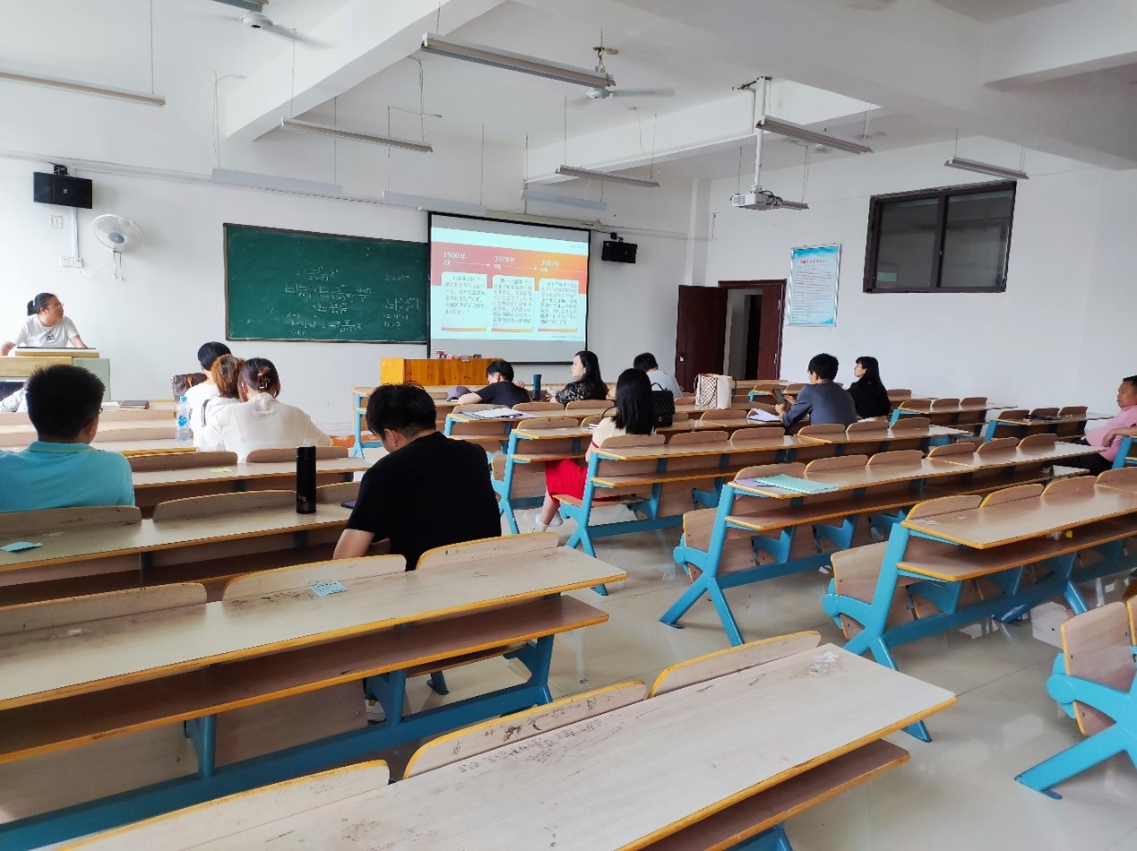 此次集体备课会以“问题式专题化团队教学改革”为主题。大会流程为,参会教师依次进行10-15分钟的试讲,在每位老师试讲结束后,全体成员进行一段简短的交流讨论。本次活动中,有六位老师进行了涵盖思想道德与法治、毛泽东思想与中国特色社会主义、马克思主义基本原理三门思政课程的试讲,这些试讲内容丰富,有很多有趣的案例让在场老师耳目一新,大会一度十分活跃。除了案例分享外,各位教师之间也对教学方式方法进行了交流,有的教师仍表现出教学不够熟练、不够自在,仍需要在工作过程中继续精进。