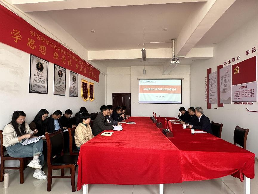2024年3月19日,best365中国官方网站在1511会议室召开就业工作推进会。校党委副书记蓝贤发、马院党总支书记张欣康、副书记李婷出席会议,法学教研室主任、各论文实习指导老师及毕业班辅导员参加会议,会议由院长文道贵主持。
