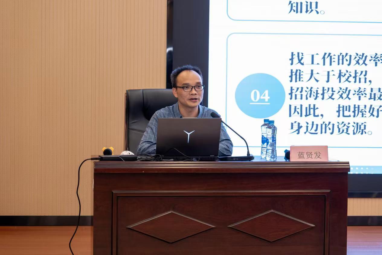讲座中,蓝贤发从“怎么看”“怎么样”“怎么办”三个方面,对就业观念、就业形势、自我认知、充分准备等内容,与师生们分享了所思所想,勉励毕业生树立正确的就业观念,认清就业形势,强化自我认知,做足就业准备,迎接未来挑战。