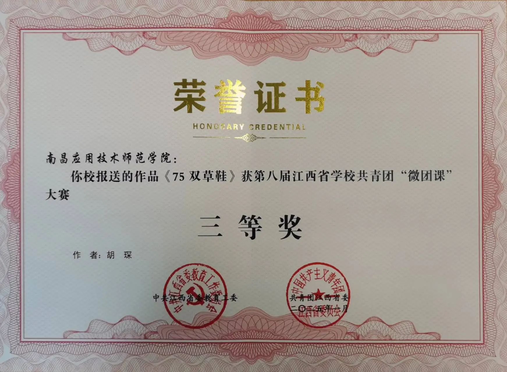 近期,我校师生在省委教育工委、团省委联合举办了第八届江西省学校共青团 “微团课”大赛中取得了优异成绩。其中best365官网胡琛老师获三等奖。