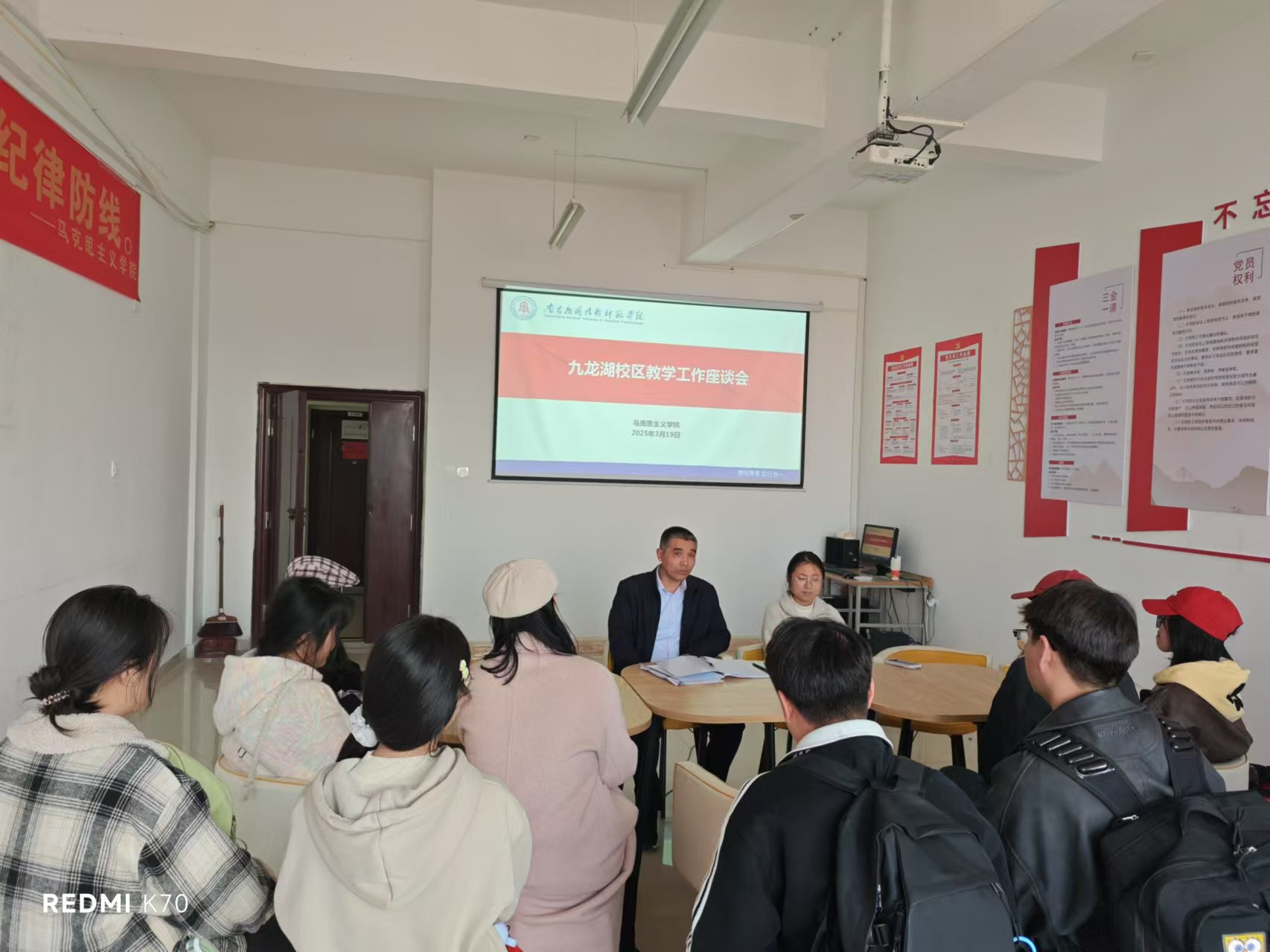 为深入了解九龙湖校区学生的教学和学习情况,进一步优化教学管理,提升教学质量,3月19日下午,学院于九龙湖校区1511会议室召开教学工作(学生)座谈会。本次会议由副院长刘德彰主持,教务科,部分教师代表,及九龙湖校区学生代表参加。