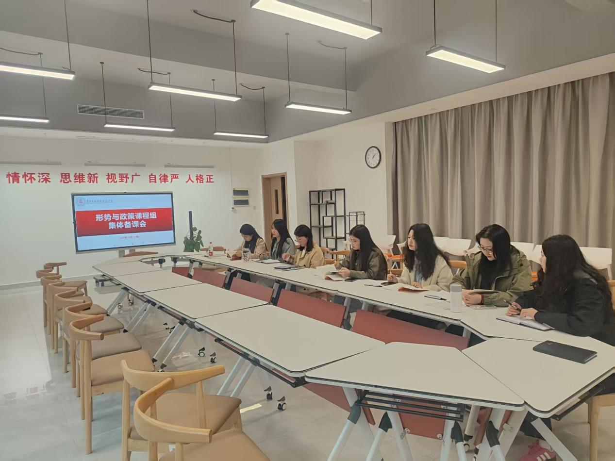 2025年10月21日下午,思想政治教育公共课教研室在沁苑七实205室开展了《形势与政策》课程集体备课会。本次集体备课会由课程组组长陆新莲主持,思想政治教育公共课教研室主任李婷及任课教师参加会议。