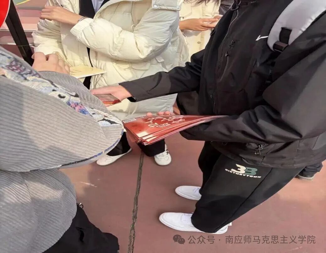 主会场活动结束后,我校队伍投身户外宣传。学子们通过发放宪法宣传单、悬挂横幅、案例解读、互动答疑等形式,向过往师生普及宪法核心内容与民生法律知识,耐心解答疑问,有效延伸了法治宣传的覆盖面与影响力,营造了“人人学宪法、人人守宪法”的浓厚氛围。
