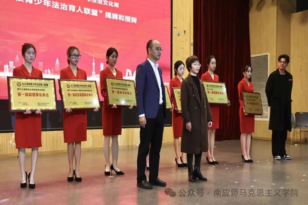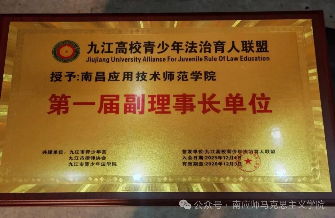 在“九江高校青少年法治育人联盟”揭牌及授牌环节,best365中国官方网站被授予该联盟“第一届副理事长单位”称号,共青城市委宣传部、政法委等单位代表为学校授牌,这一荣誉既是对学校法治育人工作的高度认可,也标志着学校在区域青少年法治教育协同发展中迈出了新的步伐。