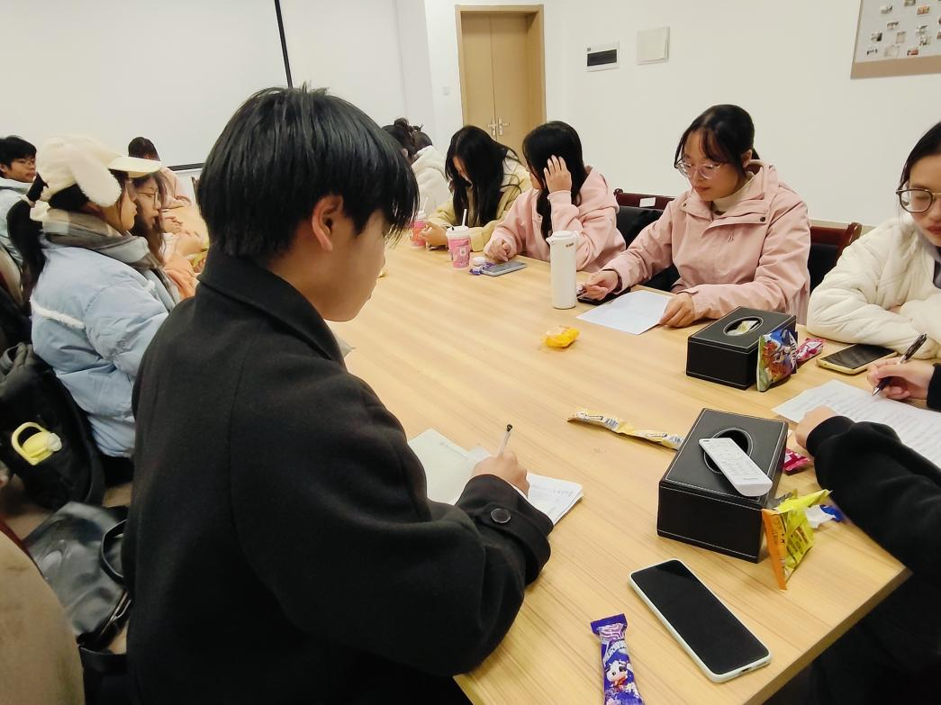 活动伊始,戴已晨同学率先登台,系统梳理了《习近平谈治国理政》第五卷的时代背景、逻辑框架与核心要义,从“历史与现实相贯通、理论与实践相结合”的宏阔视野展开解读,帮助在场同学快速建立起对著作的宏观认知。随后的新生自我介绍环节,新成员们满怀朝气地分享了自身专业背景与理论兴趣,言语间尽显对新知的渴求与融入集体的热忱。