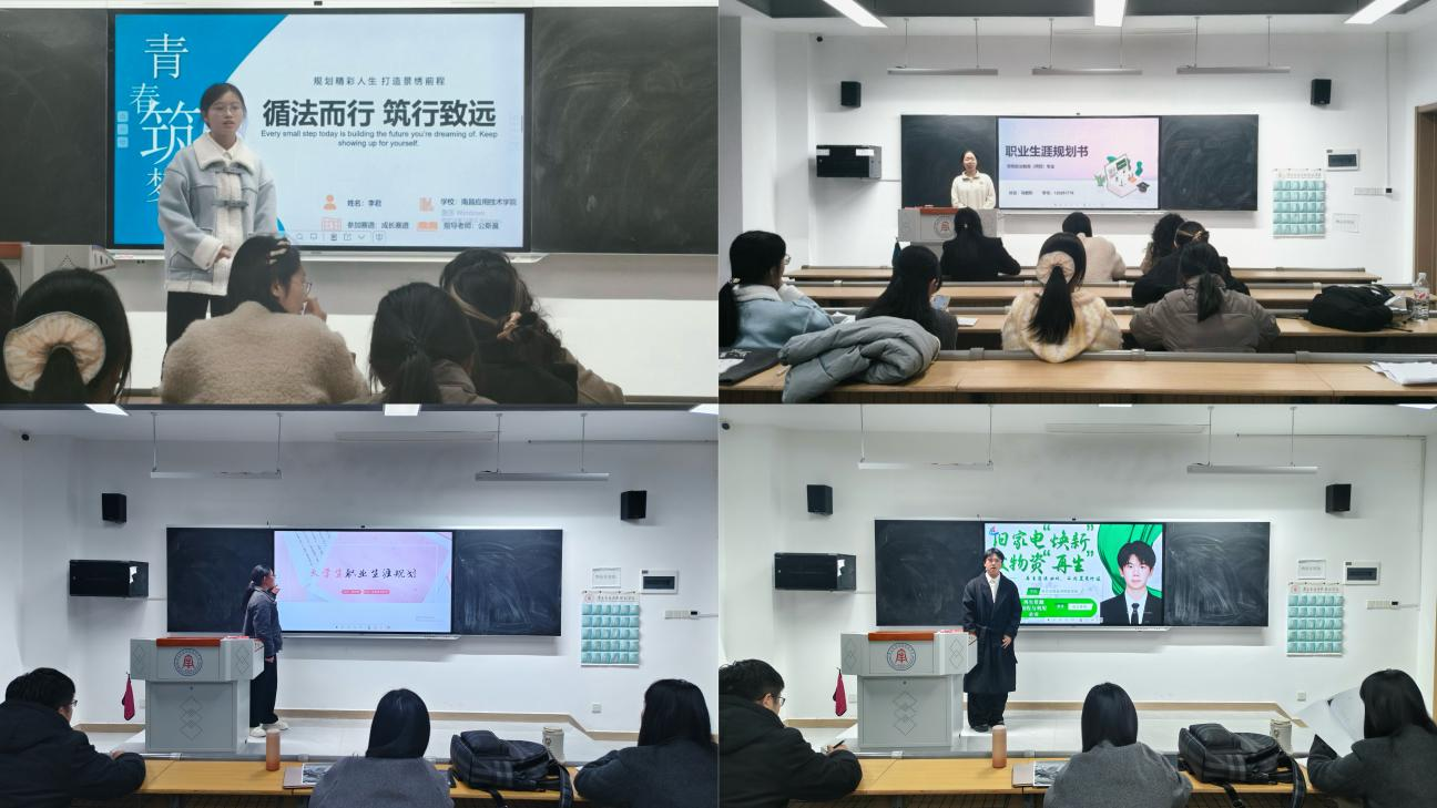 比赛中,参赛学生通过PPT展示、现场陈述等形式,围绕自我认知、职业目标确立、发展路径设计等核心内容展开充分呈现,不少选手结合马克思主义理论专业特色,深入剖析了思政教育、党政工作、理论研究等领域的职业前景与岗位需求,展现出扎实的专业认知与清晰的职业思考。各教室评委团秉持严谨负责的态度,紧扣职业目标可行性、能力提升实操性、方案逻辑性等关键维度,逐一对选手的规划方案进行细致点评,在肯定选手们积极筹备、目标明确等亮点之处的同时,还结合自身从业经验与行业趋势,针对目标与专业适配度、实践路径细化、应急能力培养等具体问题提出切实可行的改进建议,点评过程中还不乏互动答疑,实现“一对一”精准指导。
