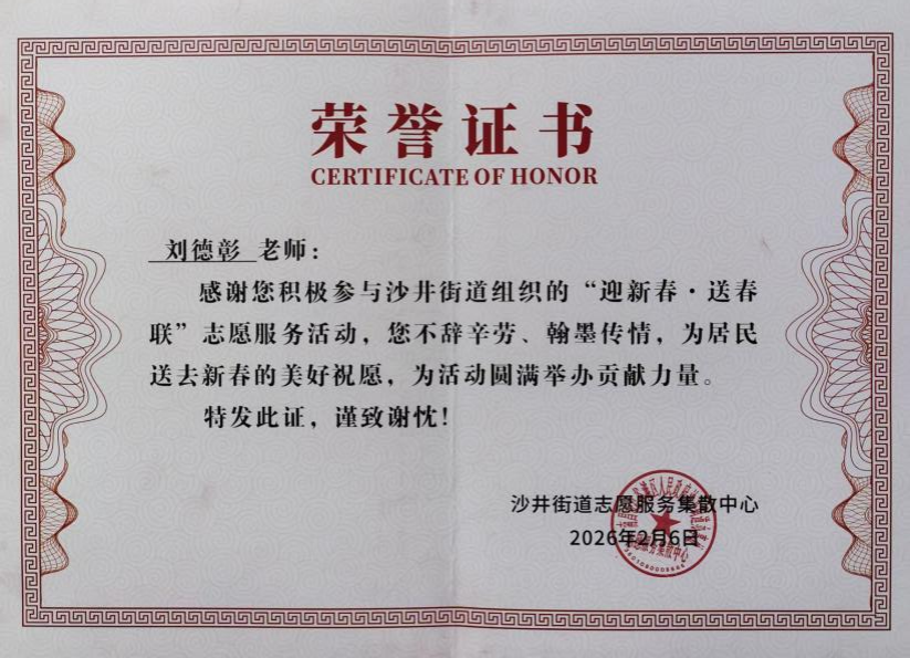 2月6日下午,best365官网副院长刘德彰参加了南昌市红谷滩区沙井街道组织的“迎新春,送春联”志愿服务活动,与其他志愿者一道书写春联,为社区居民送去了新春的美好祝愿。