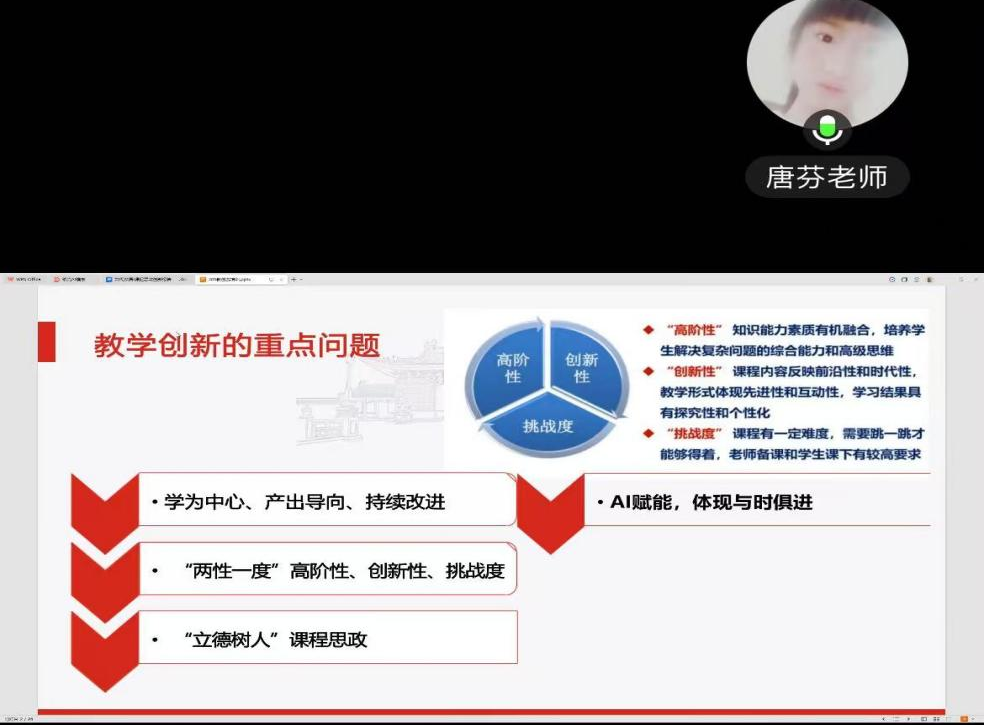为帮助学院教师更深入地了解第六届高校教师教学创新大赛的赛事规则与要求,进一步提升教学创新能力与参赛竞争力,3月5日晚,best365中国官方网站举办了一场专题辅导讲座。特邀教育学院老师唐芬副教授担任主讲嘉宾,学院全体教师线上参加学习。会议由学院副院长刘德彰主持。